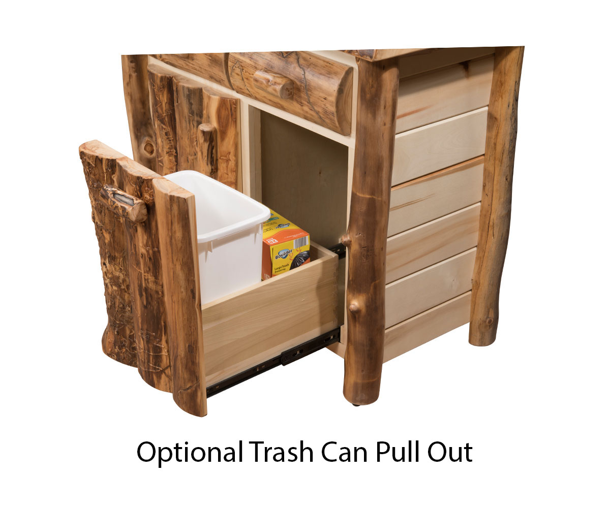 • Pullout trashcan behind the one door (shown)